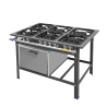 ● Queimadores simples traseiros em ferro fundido com vazão de 300g/h e acionamento único do espalhador;